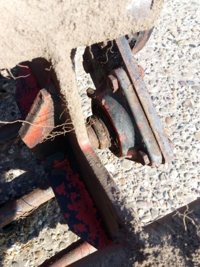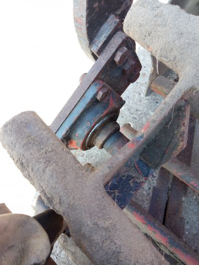 Het lijkt me dat dit lager van de packerwals niet meer goed is, de andere kant zit goed in het midden.