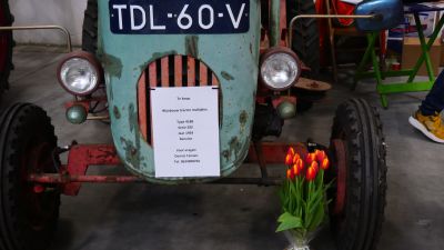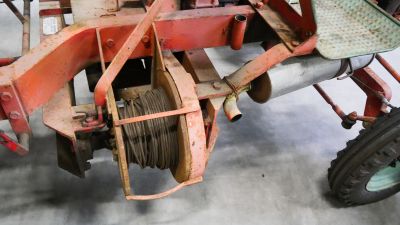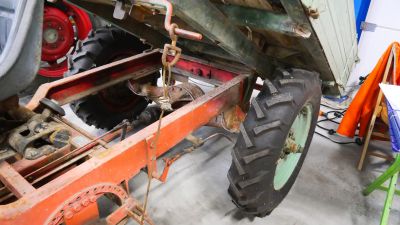 Een unieke tractor, jaren aan het werk geweest bij een wijnboer in Frankrijk. Alles werkt, het kiepbakje wordt naar beneden getrokken met een staalkabel.